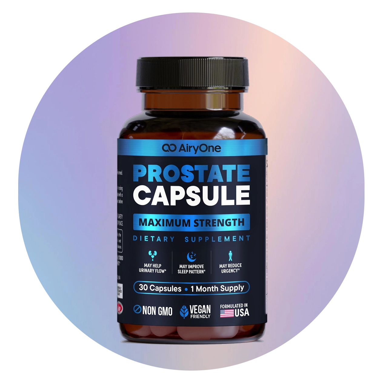 AiryOne Prostate Capsule delivers a maximum-strength blend of clinically studied herbs, essential minerals, and antioxidants to support prostate and urinary health. Saw Palmetto and Pygeum Africanum help reduce urinary urgency and promote better flow, while Zinc and Selenium contribute to hormone balance and immune function. With added herbal extracts including Green Tea, Red Raspberry, and Graviola, this comprehensive formula supports long-term prostate wellness, restful sleep, and overall vitality. Clean, vegan-friendly, and non-GMO — it’s daily protection you can trust.